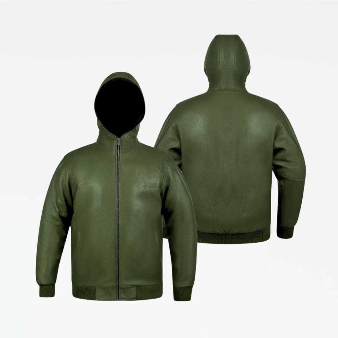 Slickz Leather Zip Up Hoodie (Army Green)