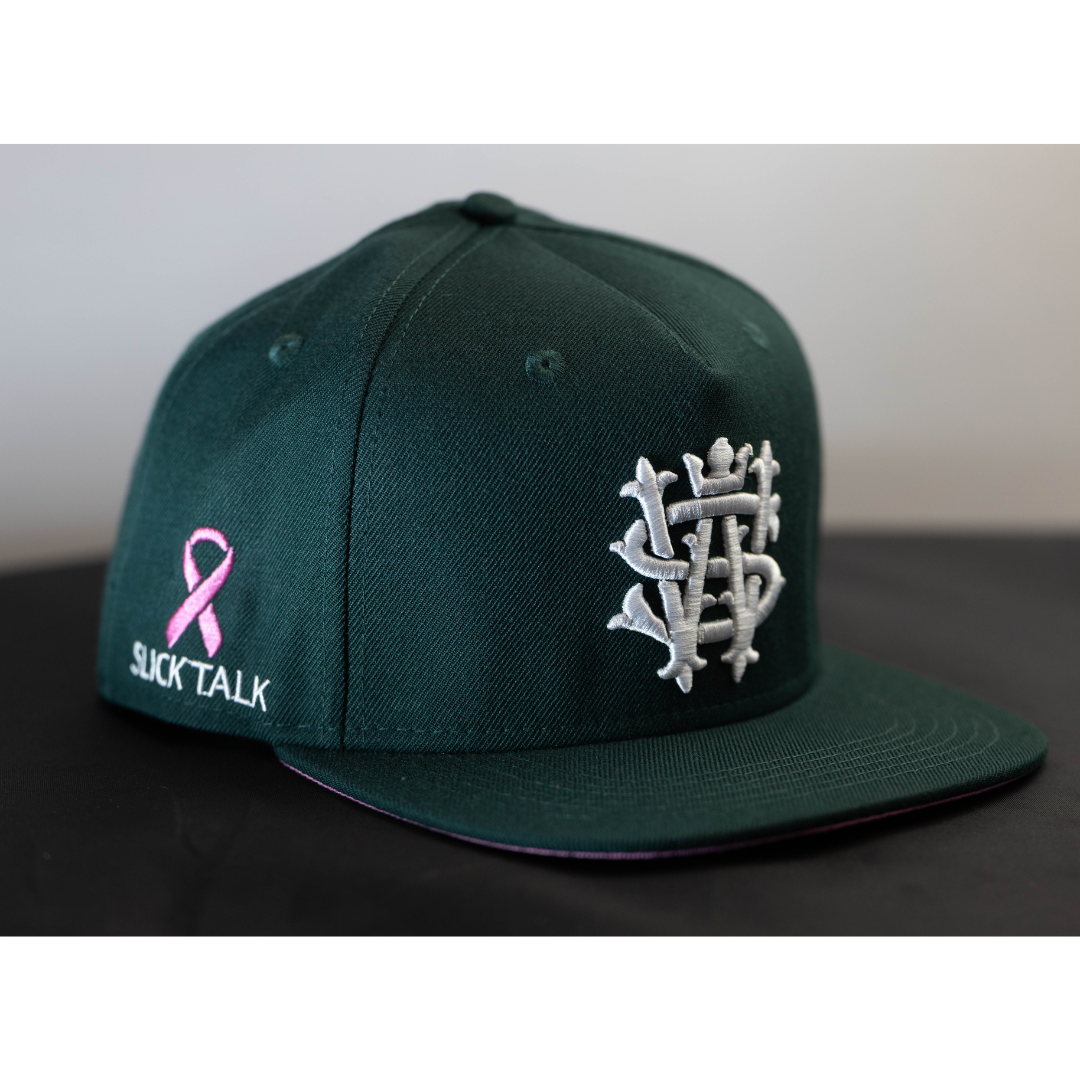 Forest Green & White Breast Cancer Awareness Slick Walk Snapback