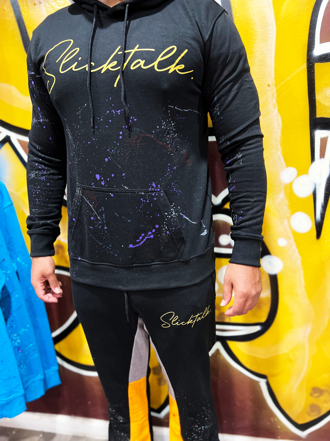 Black Slick Talk Sweat Suit