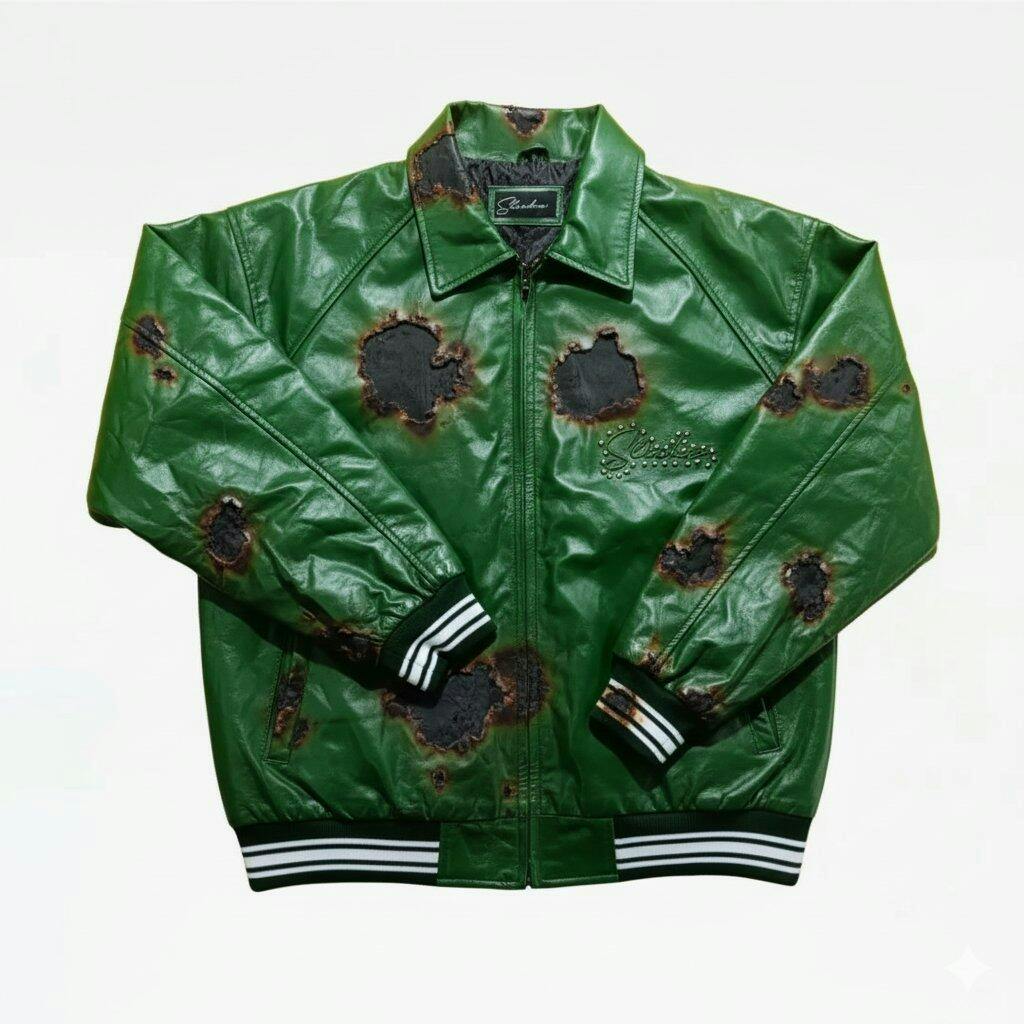 Each jacket is handcrafted with precision according to your specific measurements, requiring 2-3 weeks for production. Ideal for those looking to make a bold fashion statement, the Money Green SLICKZ Leather Jacket merges sophistication with modern urban charm.