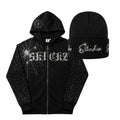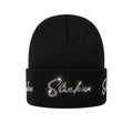 The SLICKZ Studded Spider Web Beanie brings premium street edge to your cold weather fits. Crafted from a soft, heavyweight knit, this all-black beanie features hand-set rhinestone detailing across the cuff in the signature SLICKZ script — catching light from every angle and turning heads in every direction.